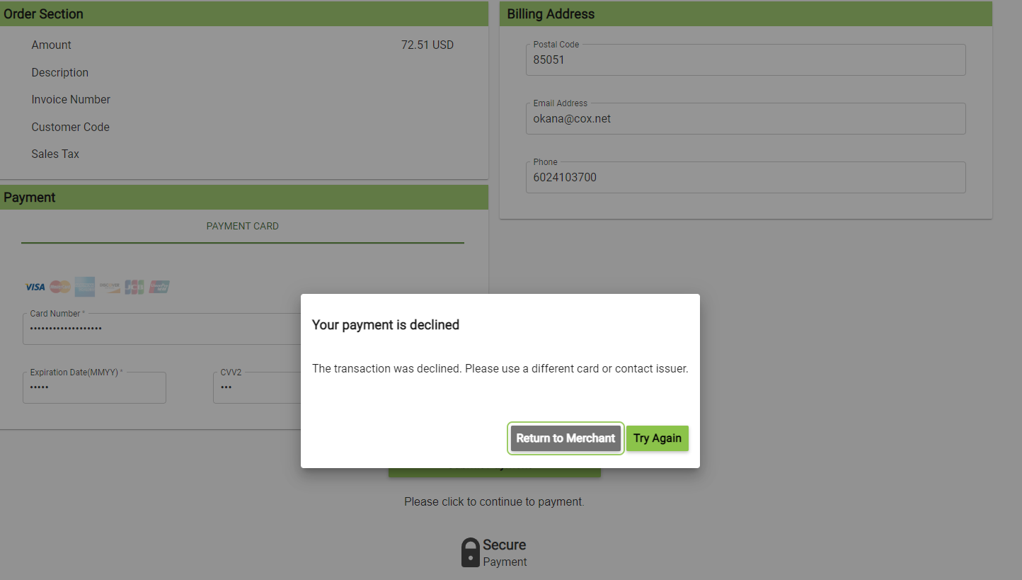 The amount, client name, zip and email will feed into the payment page and all required data will still save. Just FYI - customer data must have been saved on the CC page before pulling it up on the PAY page.
