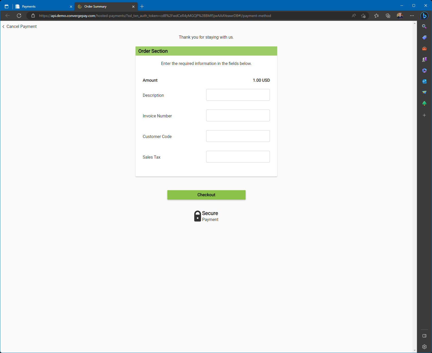 So I have made progress - I am communicating with the Converge API and can get a token which is required to be able to send the charge - next is to make sure the charge goes thru then clean up and finish the web pages.
